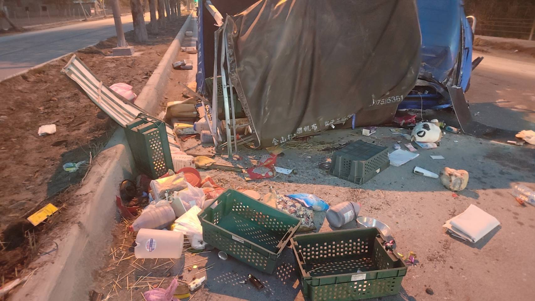 經現場酒測,駕駛無酒精反應,全案依A2交通事故程序處理,詳細肇事原因待駕駛製作筆錄後釐清。該起事故造成車上載運物品散落路面,現場佔用北上車道,警方於5時15分起暫時封閉北上車道,並實施交通管制,引導車輛借用南下車道通行。