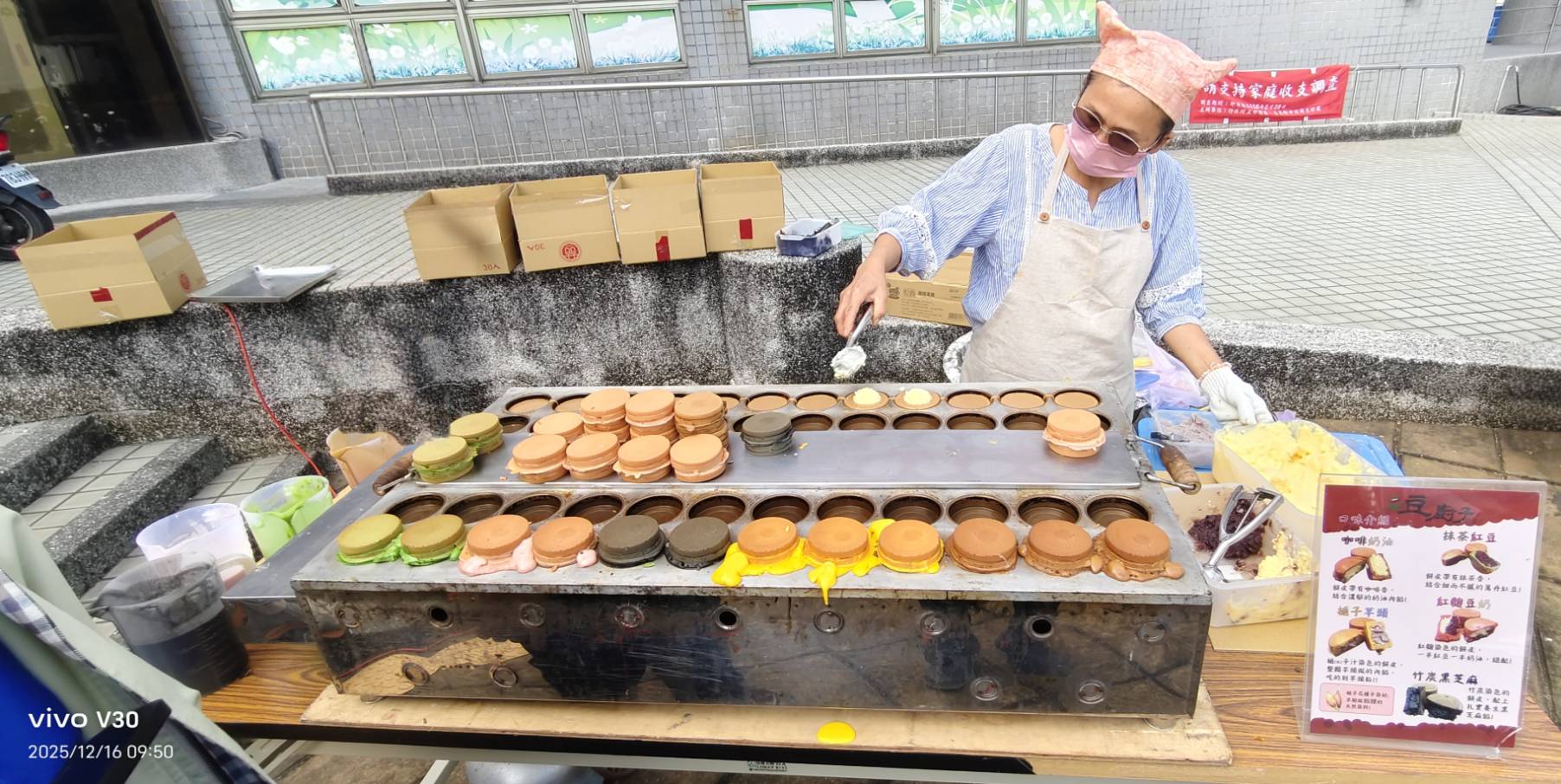 ▲馬卡龍紅豆餅品牌豆廚子創辦人王惠玲(左)發表超可愛IP紅豆餅。(圖/記者范家豪)
