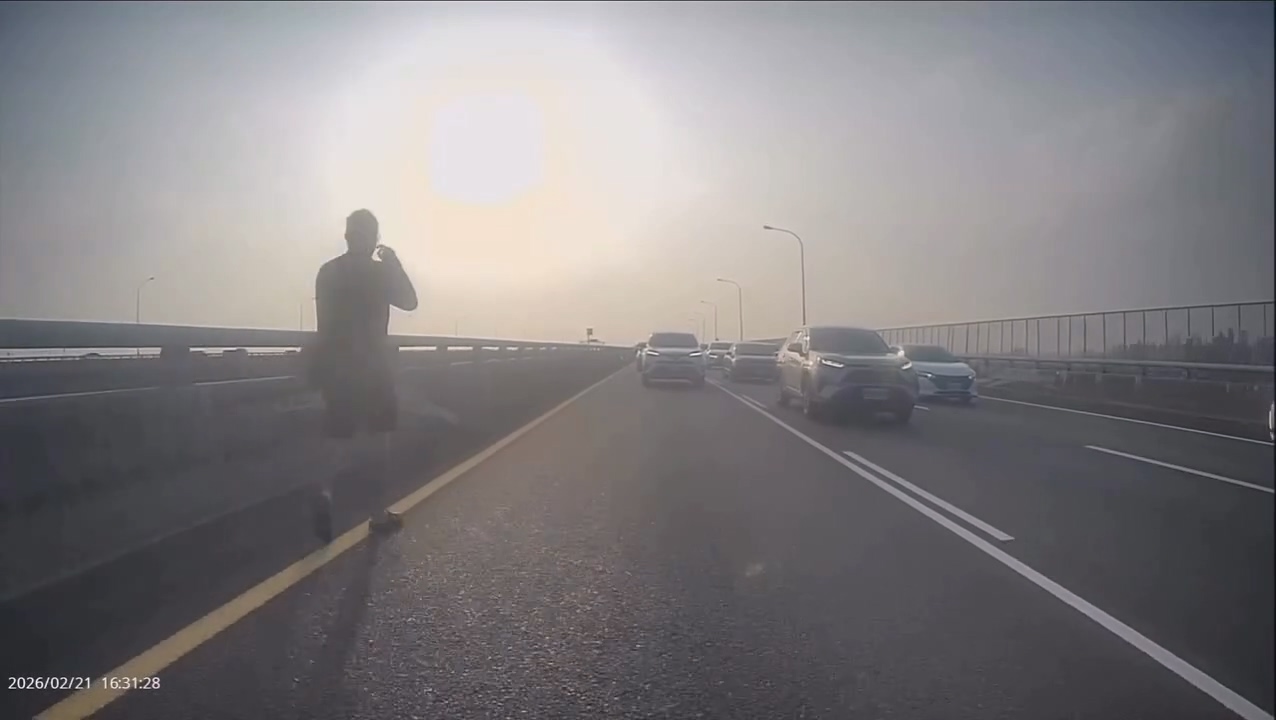 網友在Threads發文指出,在五楊高架上看到有男子突然計程車上跳車,下來就亂開別人車門,然後想往下跳的感覺。