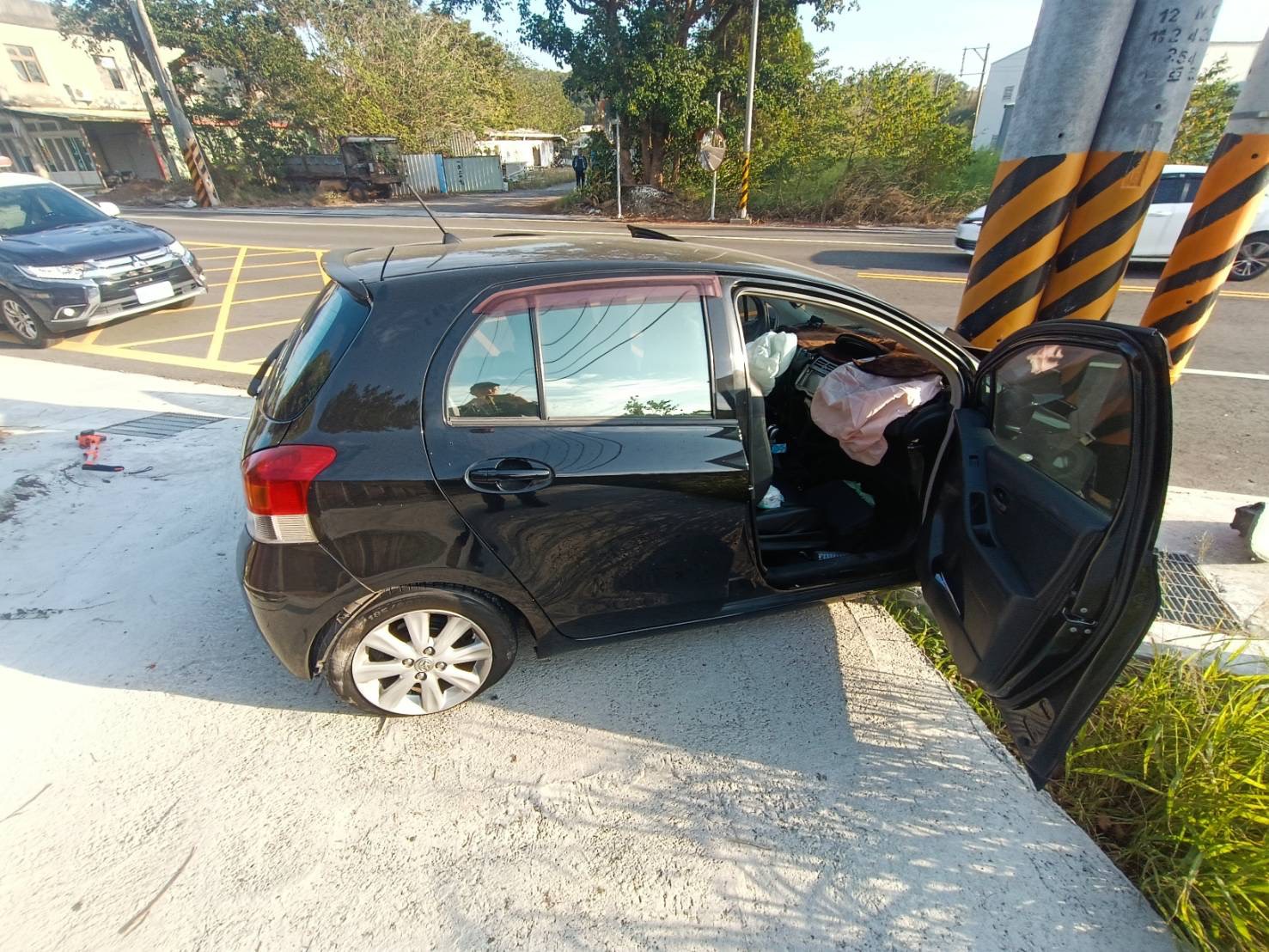 通霄苗128線自小客車自撞電線桿 一家四口受傷送醫.(圖/警方提供)