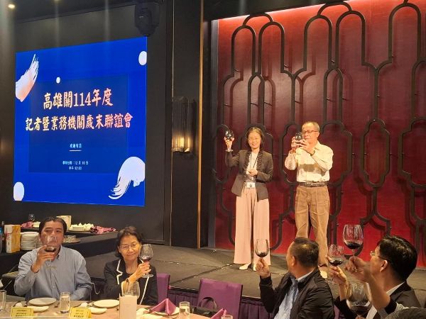 【視傳媒記者吉雄世高雄報導】關務署高雄關12月10日在高雄台鋁晶綺盛宴珊瑚廳舉行「高雄關114年度記者暨業務機關歲末聯誼餐會」,邀請港區媒體代表及多個合作機關齊聚一堂,回顧一年合作成果並強化跨機關交流,現場席開十多桌,氣氛熱絡。
