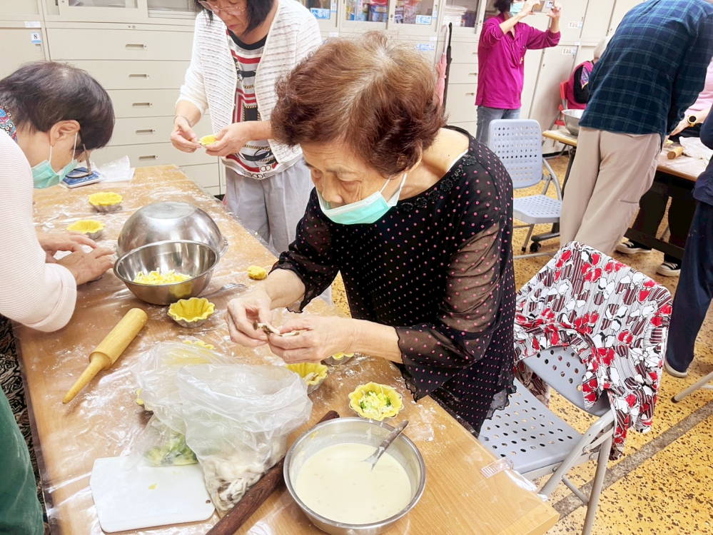 ▲八德榮家「第五期烘焙教室」開幕,住民長輩巧手悉心製作鹹派,認真完成每一步驟。(圖/八德榮家提供)