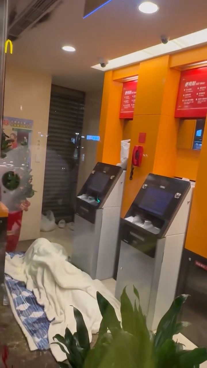影/霸佔銀行ATM!反鎖後鋪墊子「蓋棉被爽吹冷氣睡覺」 路過民眾看傻