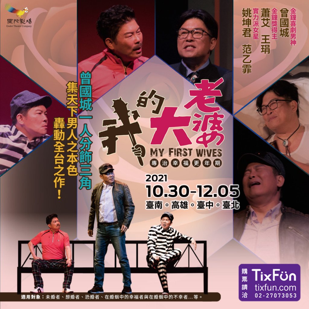 昨晚進劇場,看了果陀在疫情之後的首演:我的大老婆!這是一齣情境喜劇,使用幽默詼諧的表達方式,反映兩性在親密關係中的多種面貌。劇情非常簡單(但內涵可以很複雜):三個19年沒有見面的大學同學,在死黨(一開始就無法出現第四人)的葬禮上重逢,因為死黨一直受困於老公的拈花惹草而最終以自殺結束了生命,三人對此有所感觸,因而逐步透露出自己的婚姻也出了狀況。