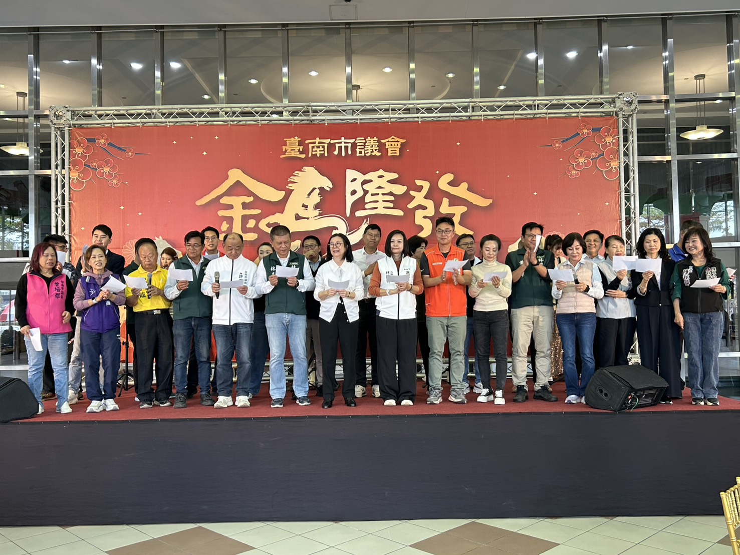 市長黃偉哲則是感謝議員們長期以來對市政的監督與支持,表示正因有議會的監督力量,市政才能持續進步、讓市民得福。他也肯定議員們在基層服務與市政監督上的投入,並以吉祥話「一馬當先、馬到成功」祝福大家新的一年平安喜樂、萬事順心。