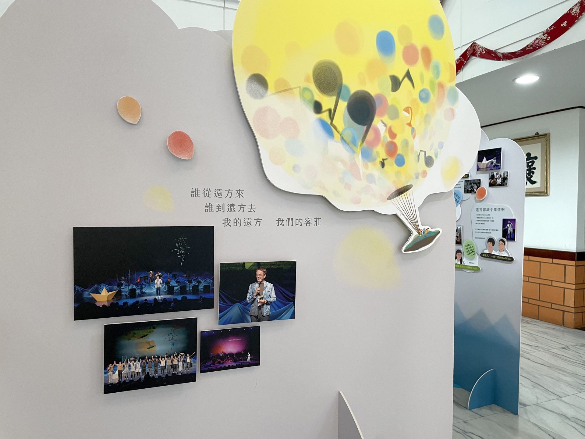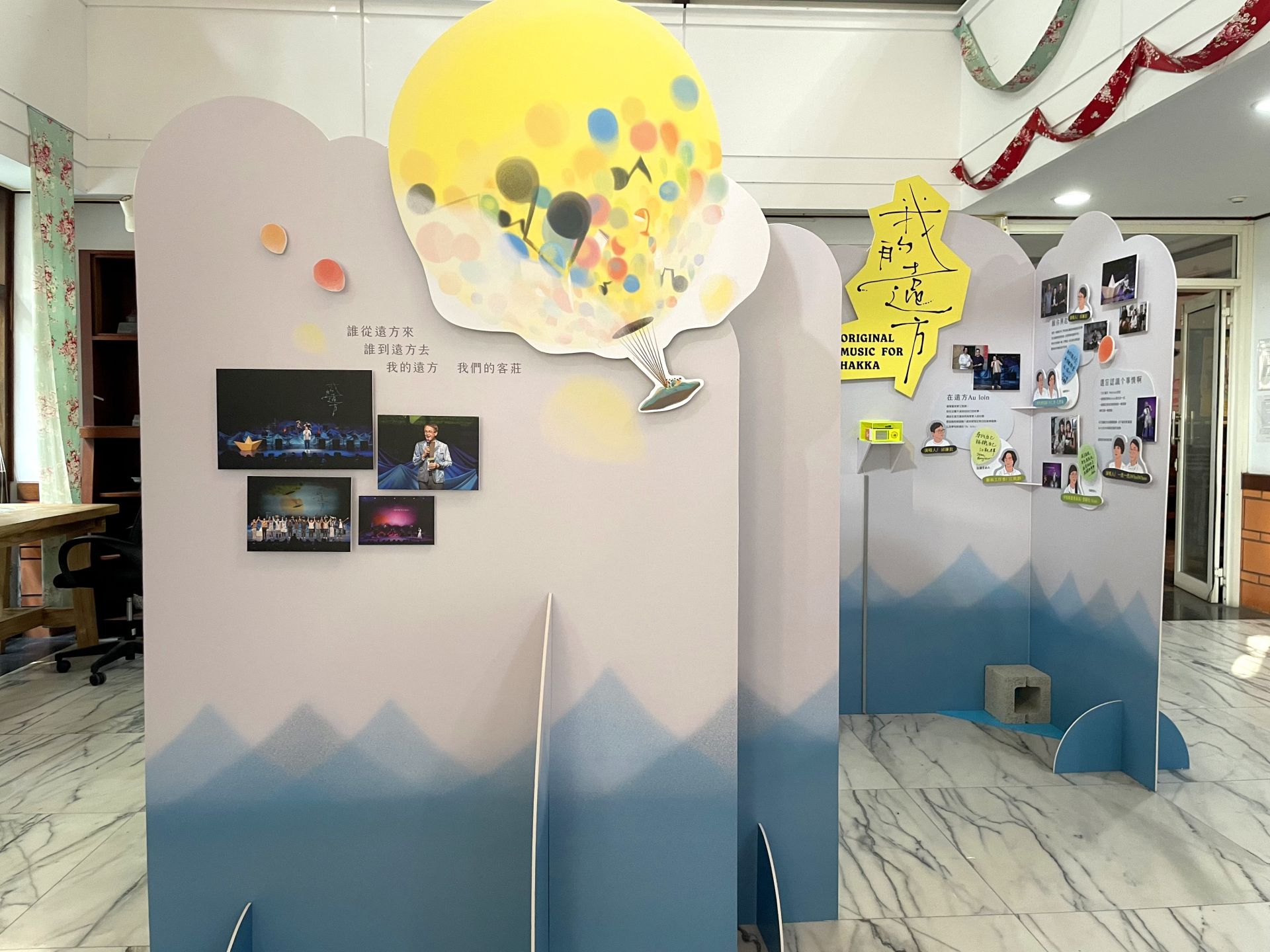 展場首先以大型展板呈現熱氣球意象,搭配「誰從遠方來、誰到遠方去,我的遠方,我們的客莊」文字,象徵客家文化與世界夢想的升起與移動,並結合音樂會現場影像照片,引導觀眾從視覺與情感層面進入展覽主題,作為認識《我的遠方》的第一道入口。