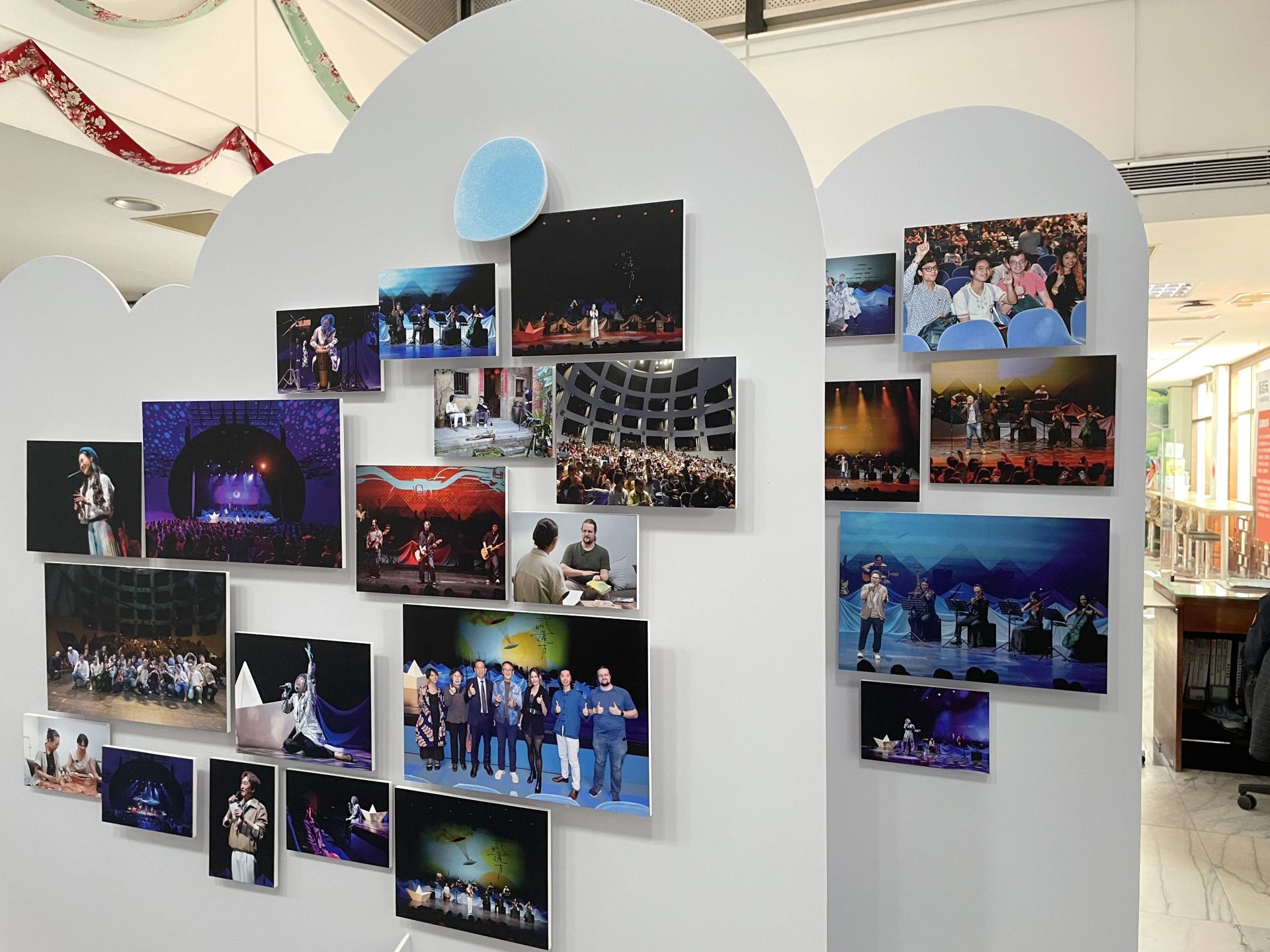 另一側主題展板則聚焦年度主題《我的遠方》,介紹今年度受訪者背景、音樂創作者與各首歌曲的創作理念,呈現創作如何從生命經驗出發,轉化為音樂作品。各展板下方以海浪意象貫穿整體視覺,象徵文化如水般流動、延續與匯聚,呼應世界客家在遷徙與交流中持續生成的文化樣態。