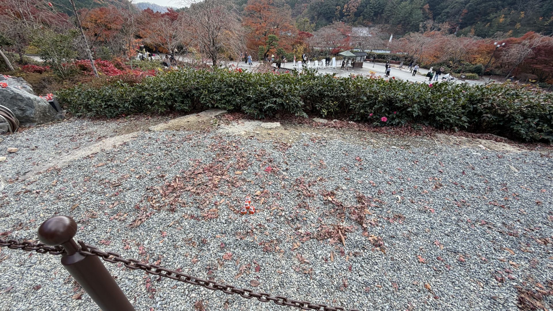 ▲日本大阪知名景點勝尾寺的「台灣達摩陣」昨(1)日才剛排回原形,今日只看得到4隻小達摩。(圖/記者金東天攝,下同)