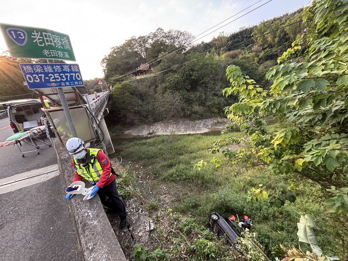 苗栗自小客車自撞墜落橋下溪床! 女駕駛受傷送醫