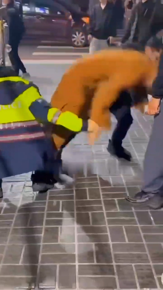 台中發生車禍,一名法師撞到賓士,想要肇逃被攔下,最後被警方過肩摔壓制。