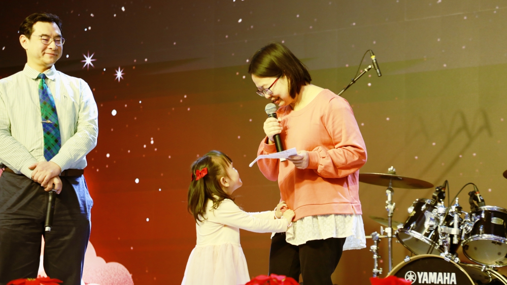 ▲2025新竹馬偕「接住你」感恩音樂會幸溫馨登場,一名早產兒與媽媽在新生兒科主任宋聿翔的帶領下,一同上台分享治療歷程。這位小寶寶出生時僅795克,如今已經是健康活潑的4歲小女孩,在媽媽的陪伴與醫護守護下,一步步勇敢成長,讓現場觀眾深受感動。(圖/新竹馬偕醫院提供)