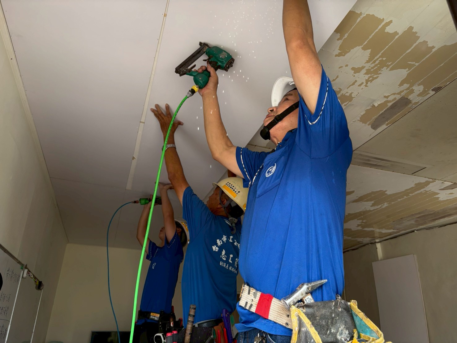 此外,今日還有木工工會至北區進行天花板及門片修繕,該處為社團法人台灣黃絲帶愛網關懷協會的新據點,提供弱勢孩童課後照顧及課業指導。後續還會安排油漆工會進行粉刷美化,讓這些弱勢孩子們有個安全舒適的活動空間。