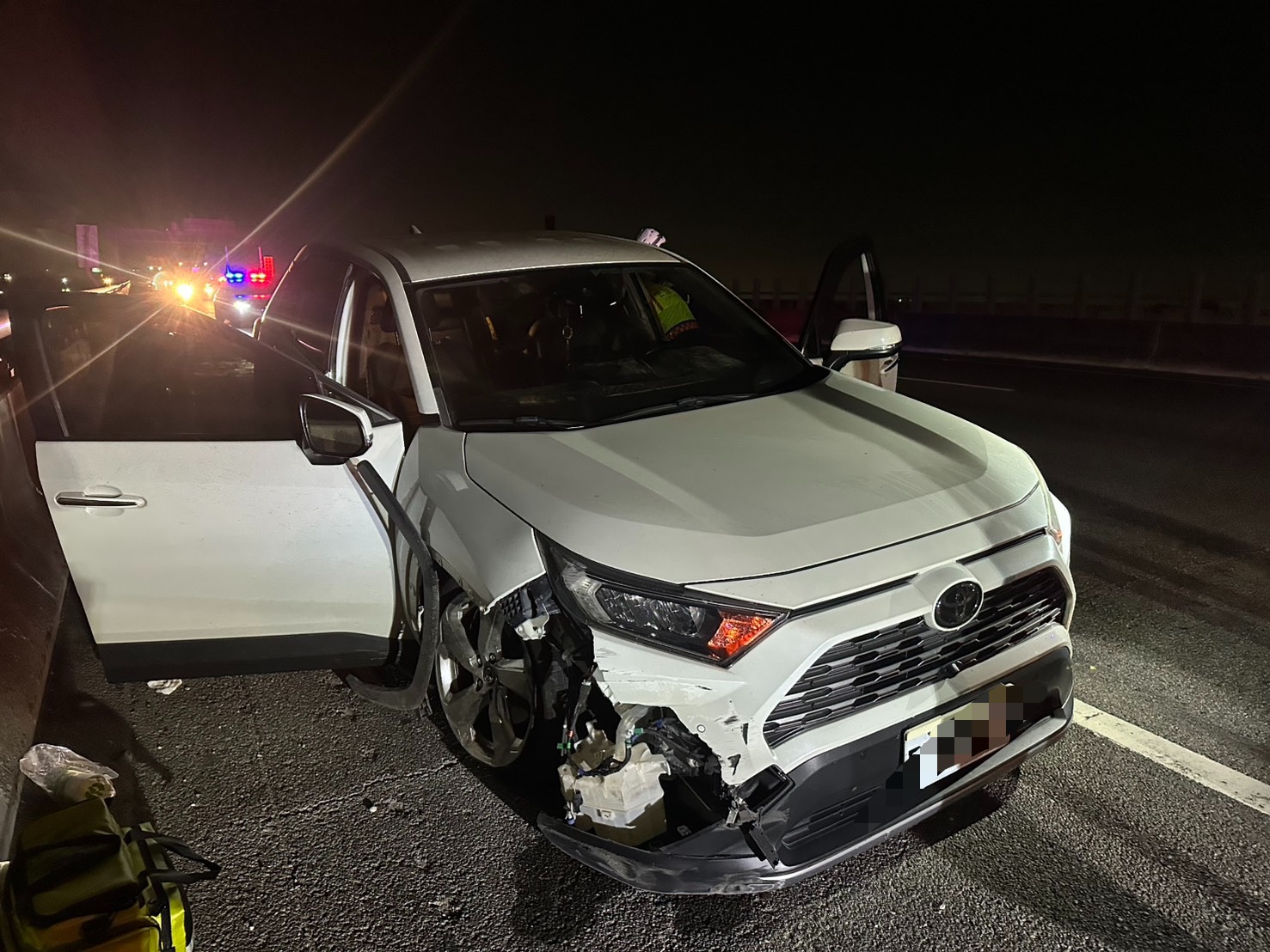 國道3自小客車自撞護欄造成兩人受傷,員警到場調查處理。翻攝畫面