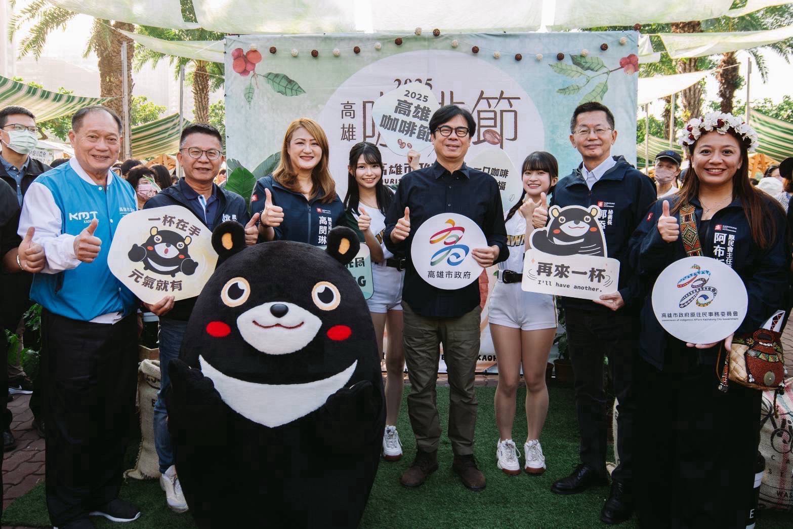 【黃婉柔/高雄報導】全台咖啡迷看過來!第二屆「2025高雄咖啡節」今(22)日於凹子底森林公園盛大登場。 安排60攤精品咖啡與特色甜點品牌,並精心規劃金牌大師講座、咖啡體驗及食農教育等豐富活動,完整展現高雄咖啡產業從產地到都會的多元風貌,現場咖啡香氣四溢,首日即吸引超過3萬人聞香朝聖。開幕儀式由充滿原民熱情的六龜區「尿布樂團」開場,並由高雄市政府郭添貴秘書長、與會來賓、觀光大使高雄熊及台鋼雄鷹啦啦隊 Wing Stars等,熱鬧揭開活動序幕。而市長陳其邁更聞香而來,驚喜現身咖啡市集,親自體驗香醇的原鄉精品咖啡,並熱情歡迎海內外遊客及演唱會歌迷粉絲,把握這難得的機會,感受高雄的暖冬咖啡浪漫。