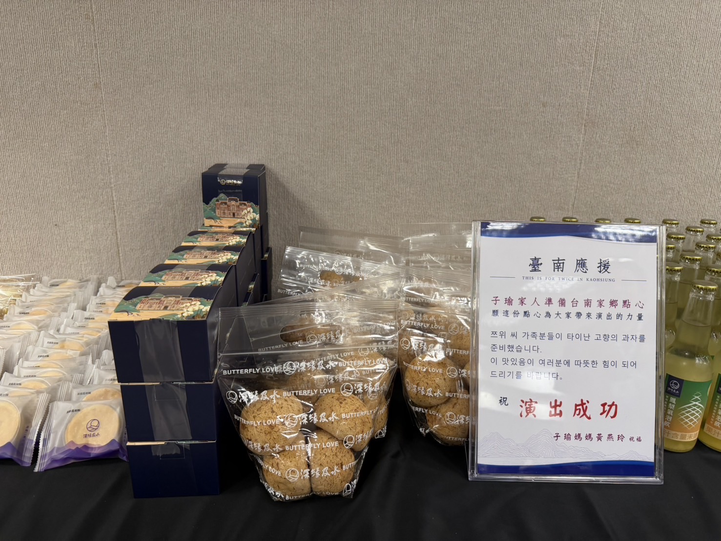除此之外,子瑜媽特別點名台南相當知名的品牌「深緣及水」,送了許多點心到後台給TWICE的團員們,另外她也特別感謝「陶子姐」陶晶瑩,連續兩天幫TWICE們準備早餐,包括了飯糰以及蛋餅等等。