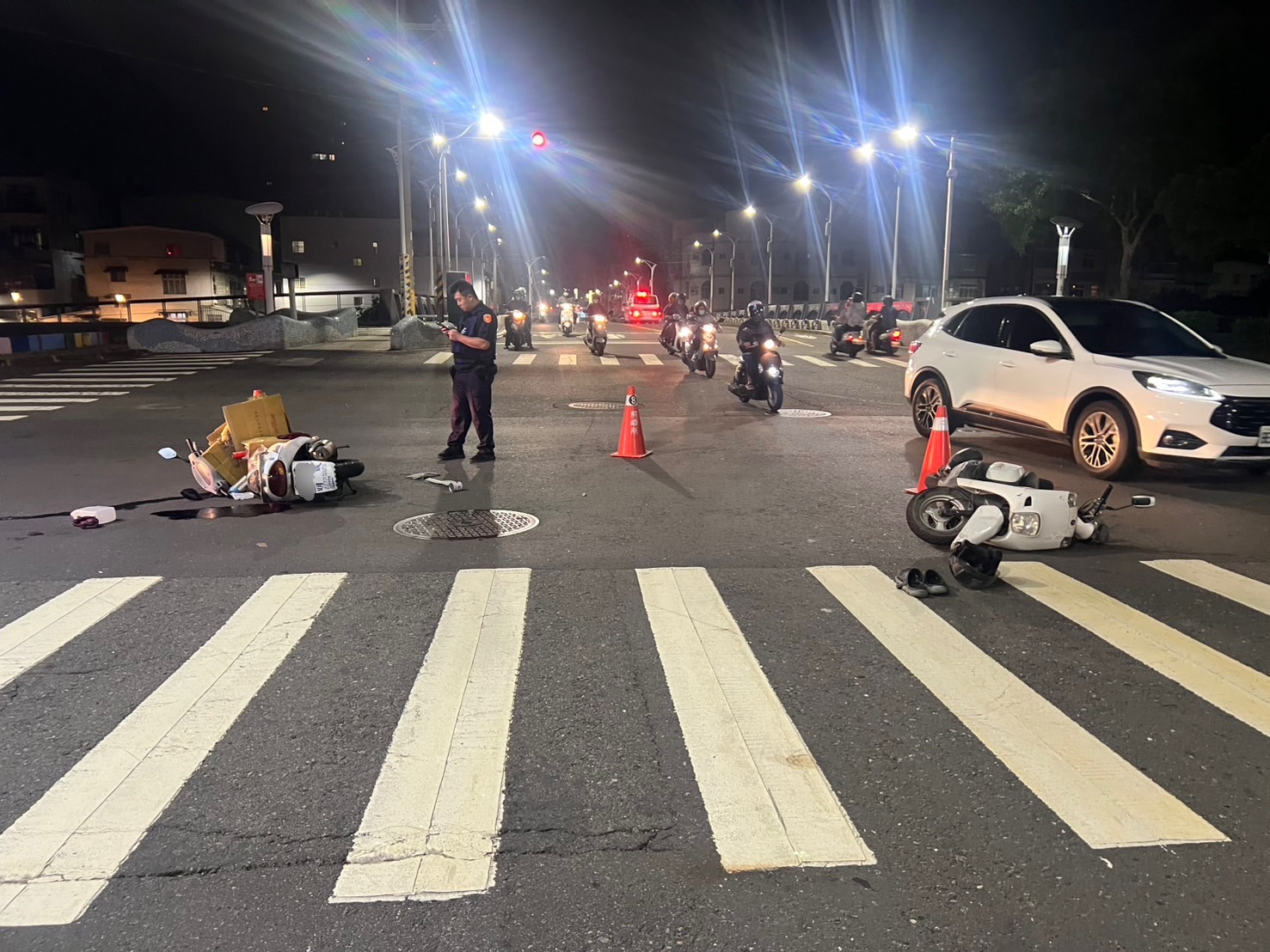 【Lai傳媒、記者爆料網/林承瀚/高雄報導】高雄岡山深夜驚傳重機碰撞!22日晚間9點多,岡山區公園西路與阿公店路二段路口發生兩部重機對撞意外,現場油味、碎片散落一地,嚇壞路過民眾。警方獲報後立即趕到,協助交通管制並通知救護。