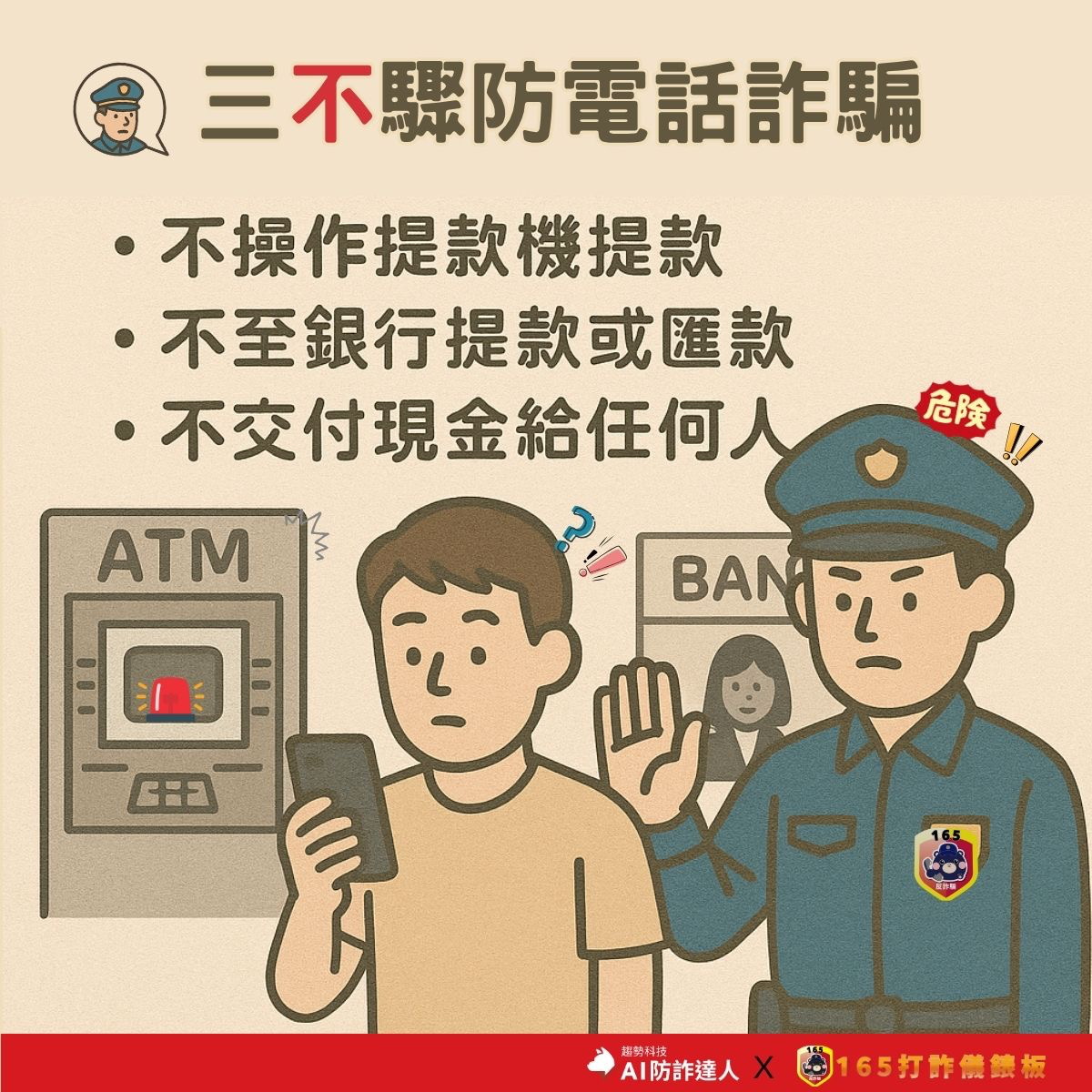 (二)以急迫、恐嚇手法催促立即匯款或操作ATM;