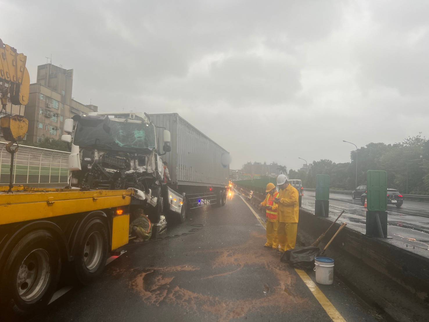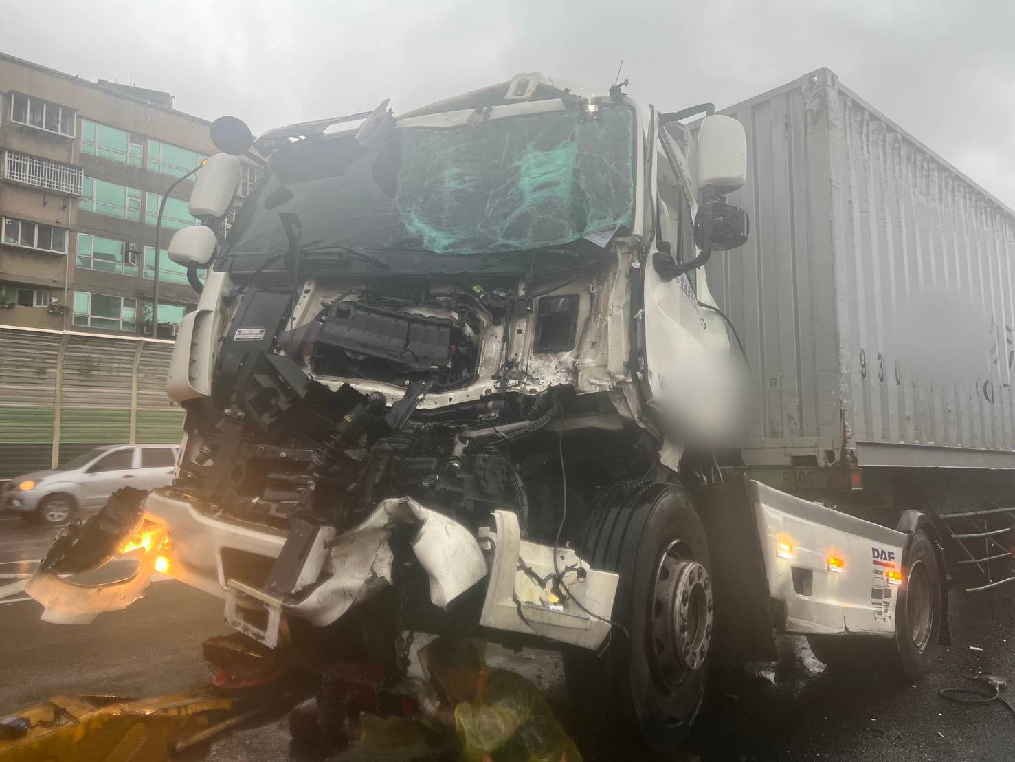 大貨車車頭撞爛。翻攝畫面