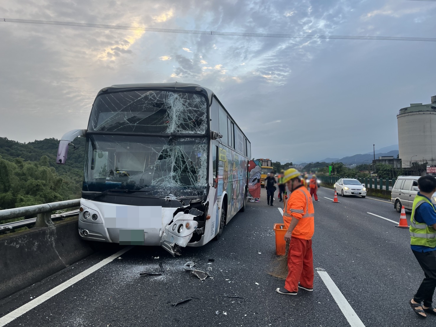 國道1號五堵路段車禍造成國光客運 6名乘客受傷。翻攝畫面