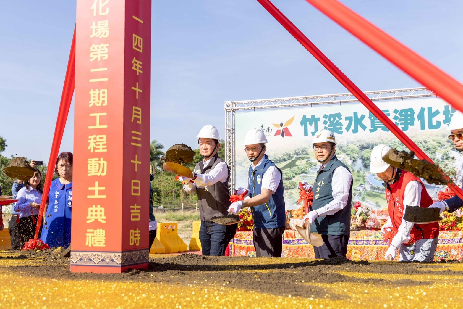 竹溪水質淨化場第二期工程於今(30)日在竹溪旁舉行動土典禮,立委林俊憲與環境部政務次長葉俊宏、台南市市長黃偉哲、議長邱莉莉代表、市議員林依婷、李啟維、沈震東、周嘉韋代表等人均到場參與活動,共同見證竹溪不斷蛻變的新願景。