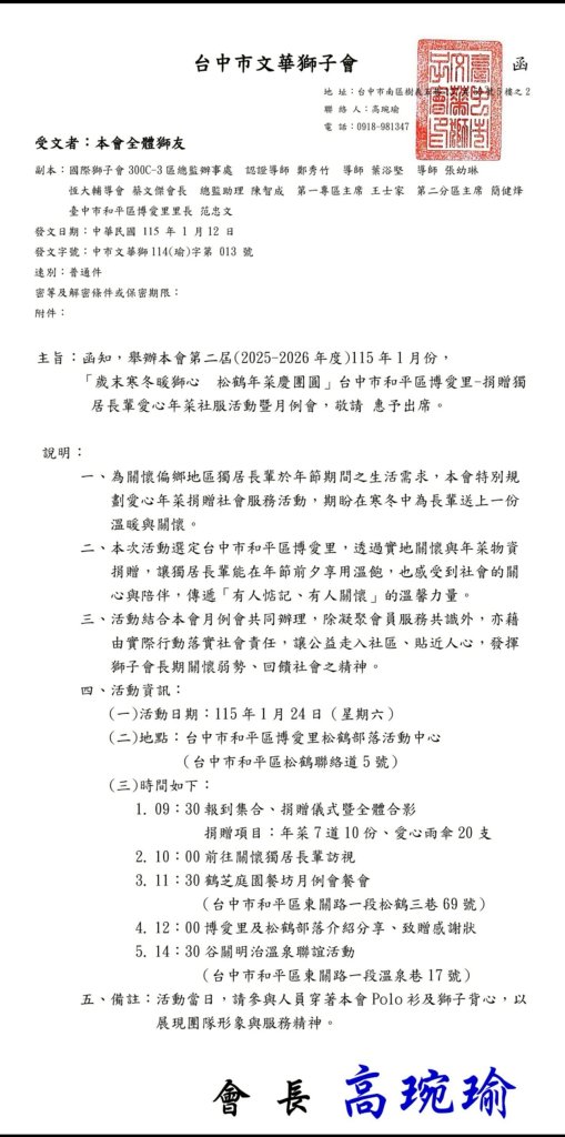 © 國際獅子會300C-3區 臺中市文華獅子會