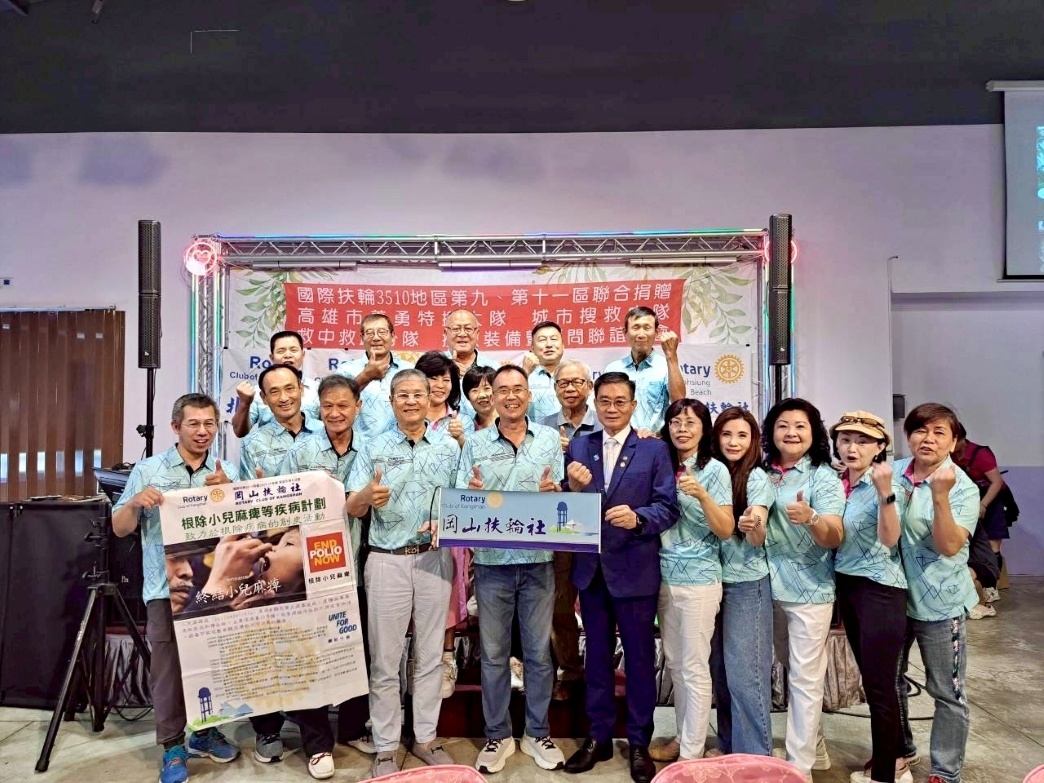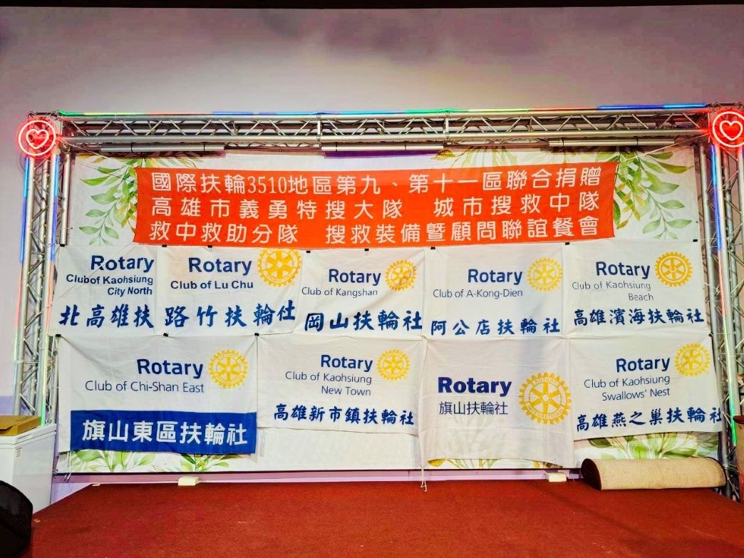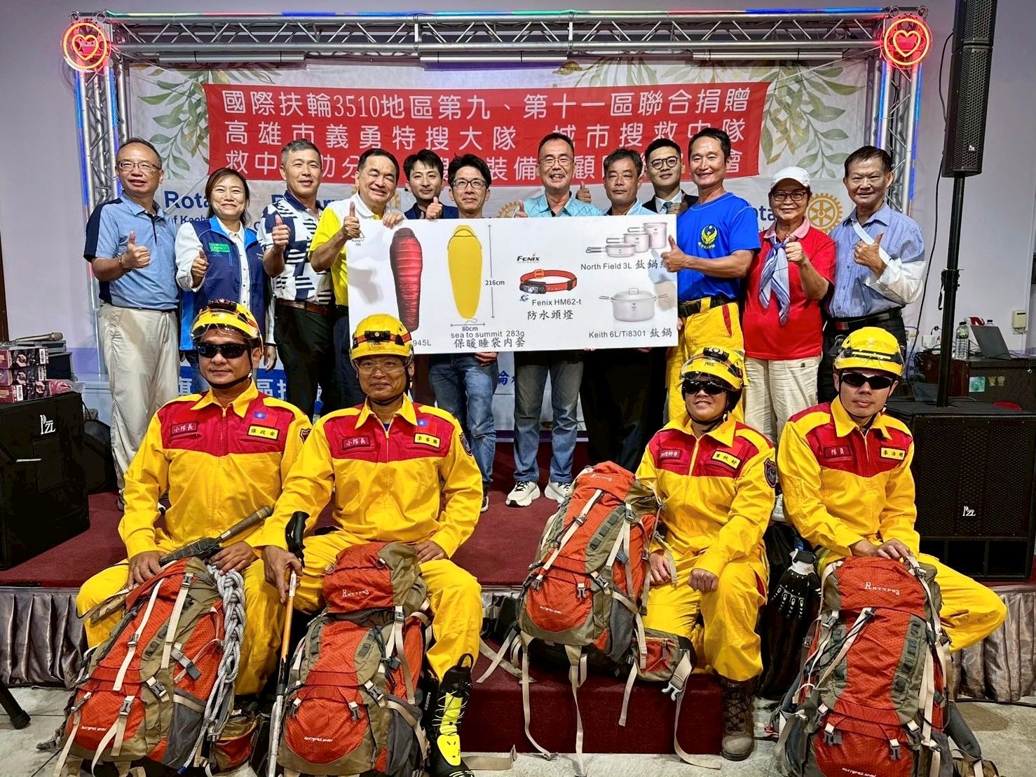國際扶輪3510地區第九、第十一分區各社於9月21日齊聚高雄岡山鼎富婚宴會館,舉辦「聯合捐贈高雄市義勇特搜大隊城市搜救中隊救中救助分隊搜救裝備暨顧問聯誼餐會」。本次活動由岡山扶輪社發起,結合濱海社、路竹社、阿公店社、燕之巢社、新市鎮社、北高雄社、旗山社及旗山東區社共同響應,展現扶輪人「服務人群,造福社會」的核心精神。