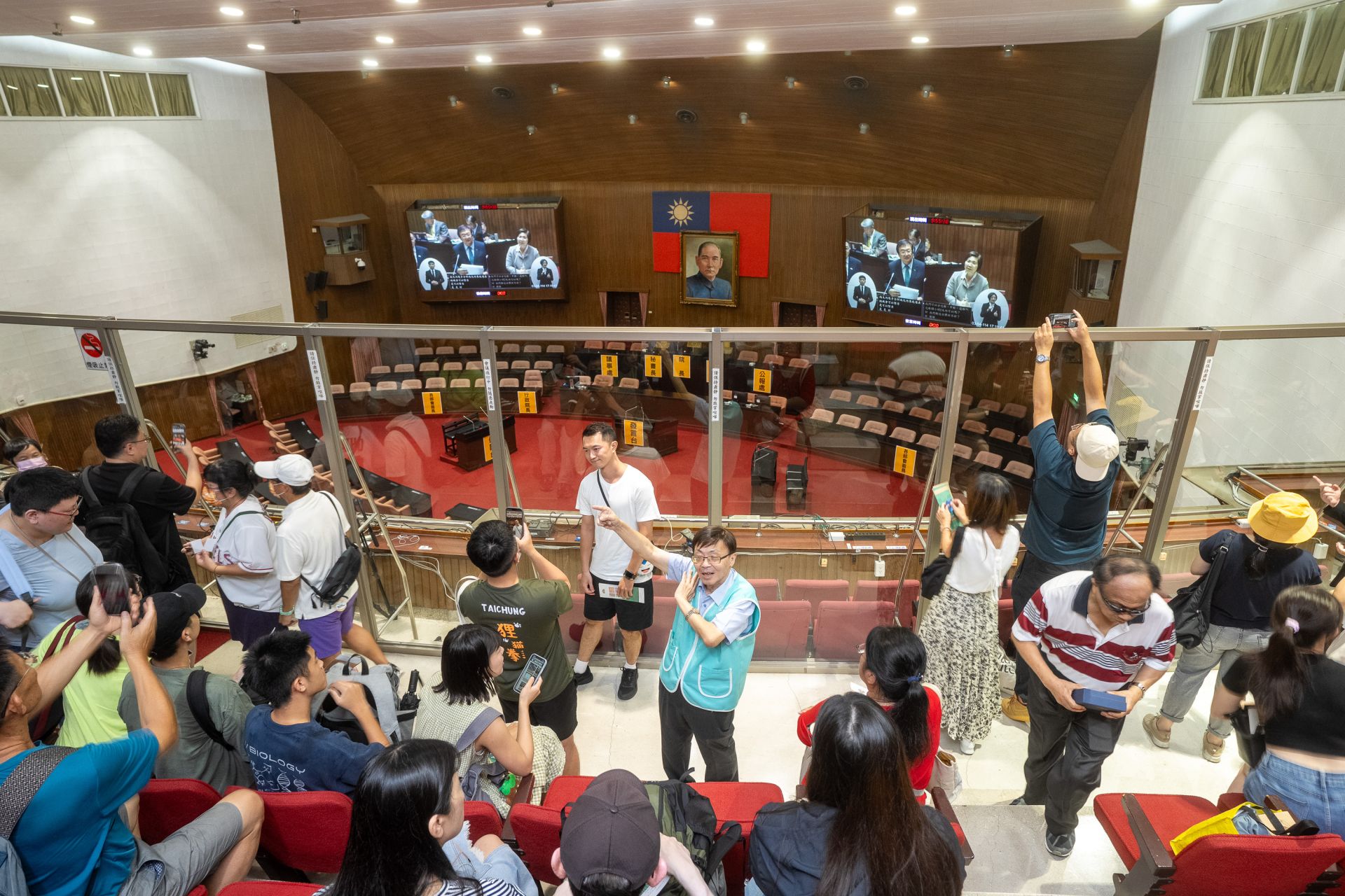 本次活動延續廣受好評的議場開放及院區古蹟介紹外,簡報室每小時輪播立法院簡介、古蹟建築之美及兒童版導覽影片,吸引民眾觀賞;議場內部也有座位標示,藉由議事人員介紹,了解院會進行與分工細節。