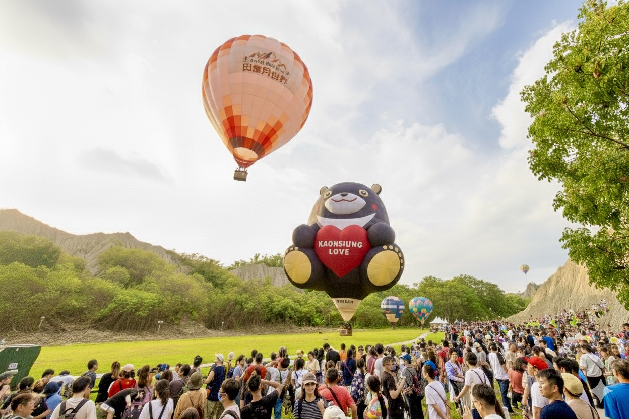 「2025高雄愛.月熱氣球」9月27日在田寮月世界盛大啟航,高雄熊造型等繽紛熱氣球在惡地地形奇景襯托下升空,交織出絕美畫面,成為南台灣秋季最吸睛的觀光焦點,教師節連假三天吸引逾4萬人次國內外遊客到訪,現場遊客人潮滿滿,帶動田寮在地餐廳與農產市集營業額正向成長。