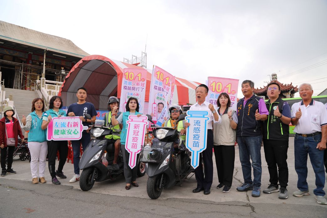 嘉縣今1日上午在義竹鄉埤前活動中心舉行「左流右新 健康安心」疫苗接種記者會,今起流感及新冠疫苗同步開打,縣長翁章梁偕同疾病管制署南區管制中心陳靜瑩科長及義竹地方民代,呼籲65歲以上長者、學齡前幼兒、醫事人員及慢性病患者等高風險族群儘早完成接種,提升免疫保護力。
