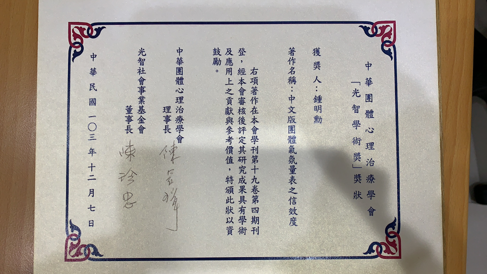 鍾醫師是精神科醫師中少數以心理治療為專長的醫師,更可貴的是鍾醫師不僅有豐富的實務經驗,更結合心理治療與實證研究,並獲得中華團體心理治療學會的學術獎。