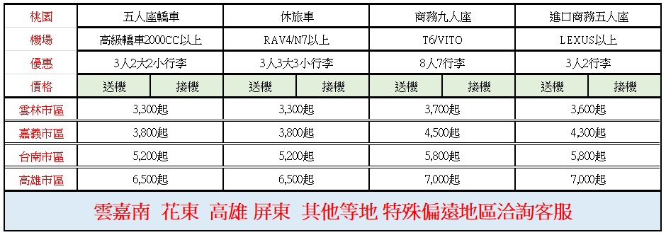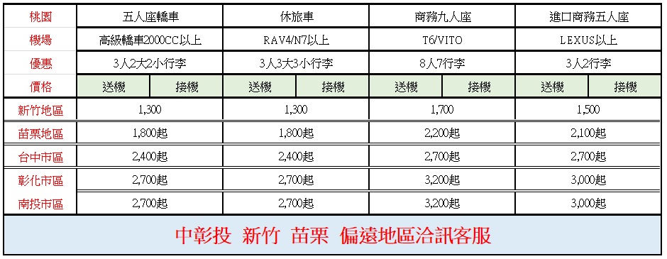 台中清泉崗機場、高雄小港機場 來電洽詢