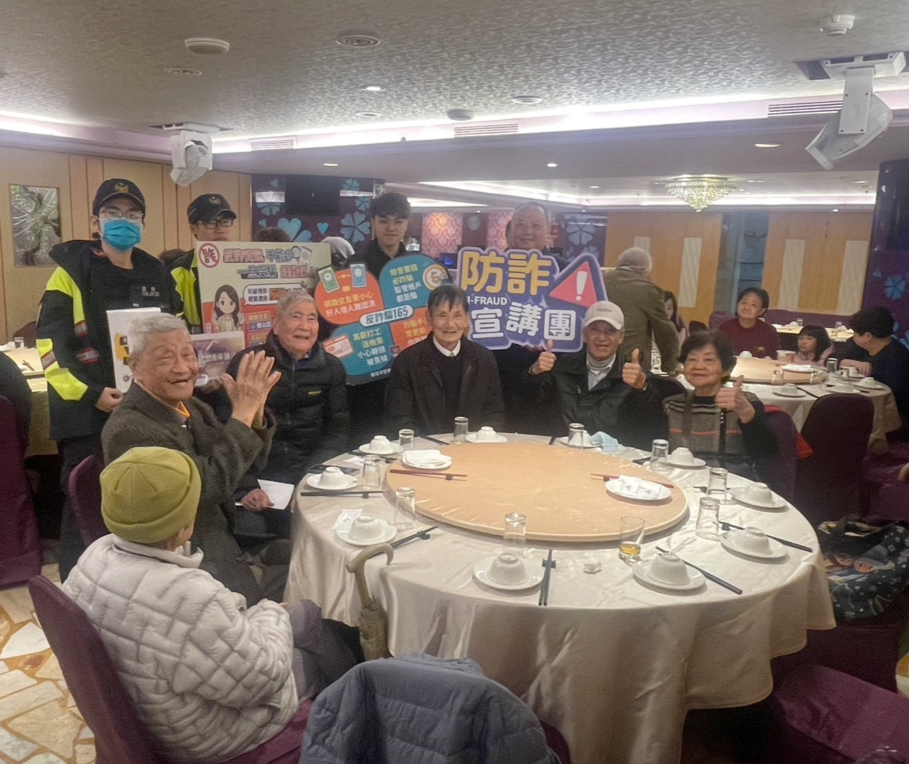 民眾感謝員警在北都飯店進行防詐宣導。圖/翻攝