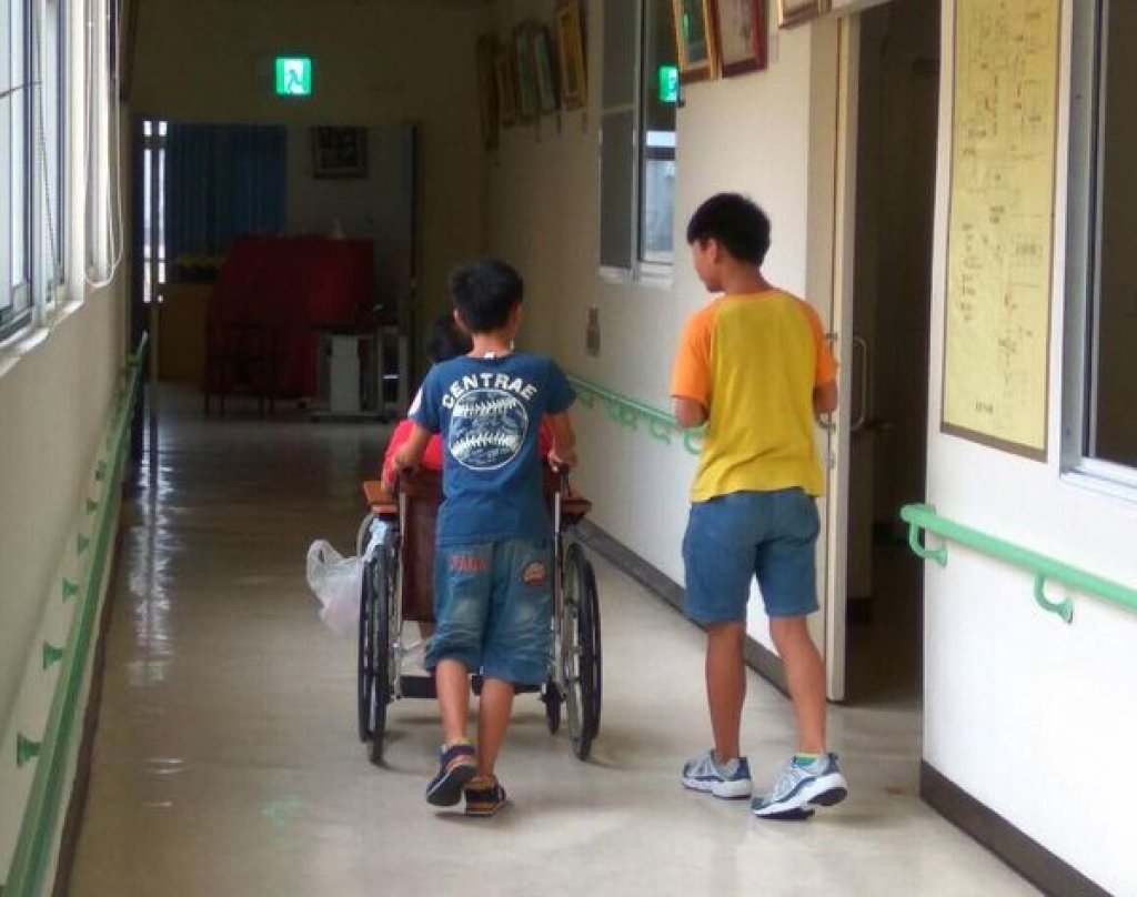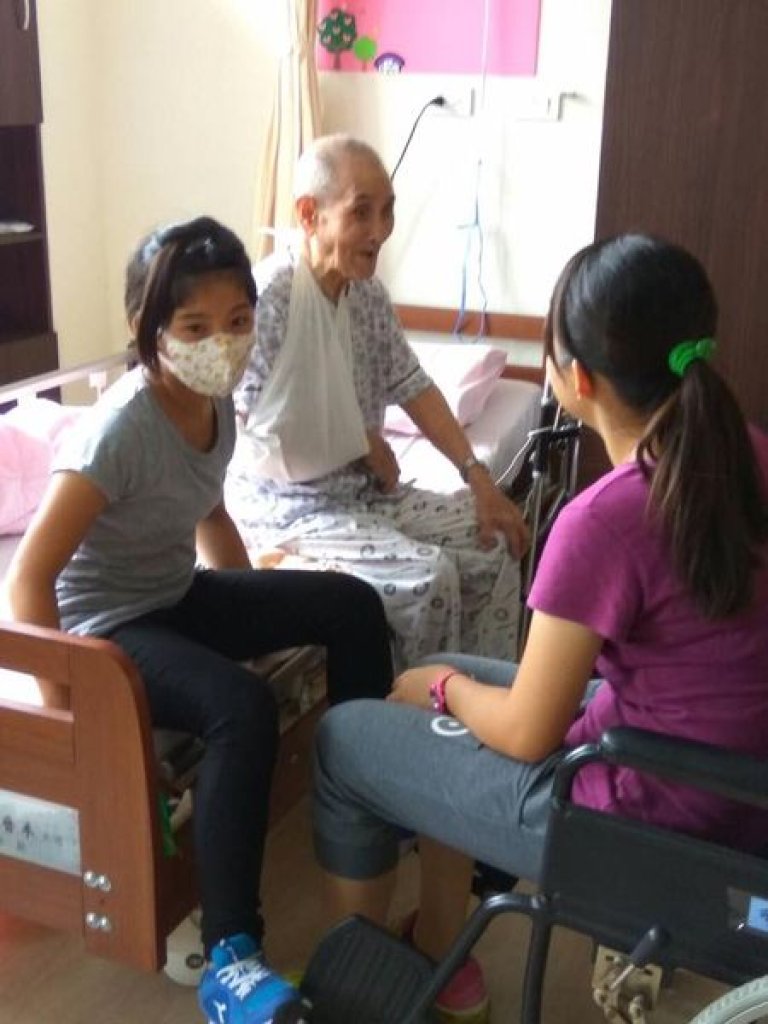 慈德孩子們到濟興長青園服務,還是有點扭捏,可能是不習慣這種氛圍。還好,有社工、實習生的協助、說明,孩子們漸漸自然起來。