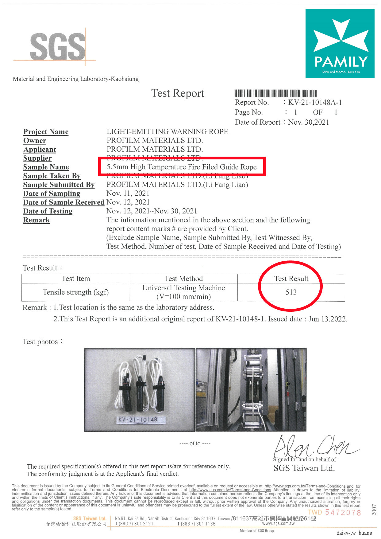 5.5mm耐高溫火場導引繩拉力報告-英文版