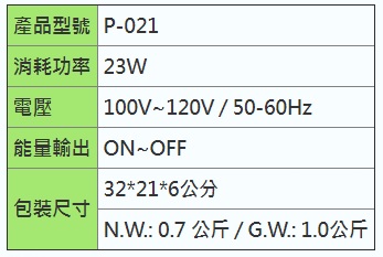 ▪ 電壓: 100V~120V / 50-60Hz