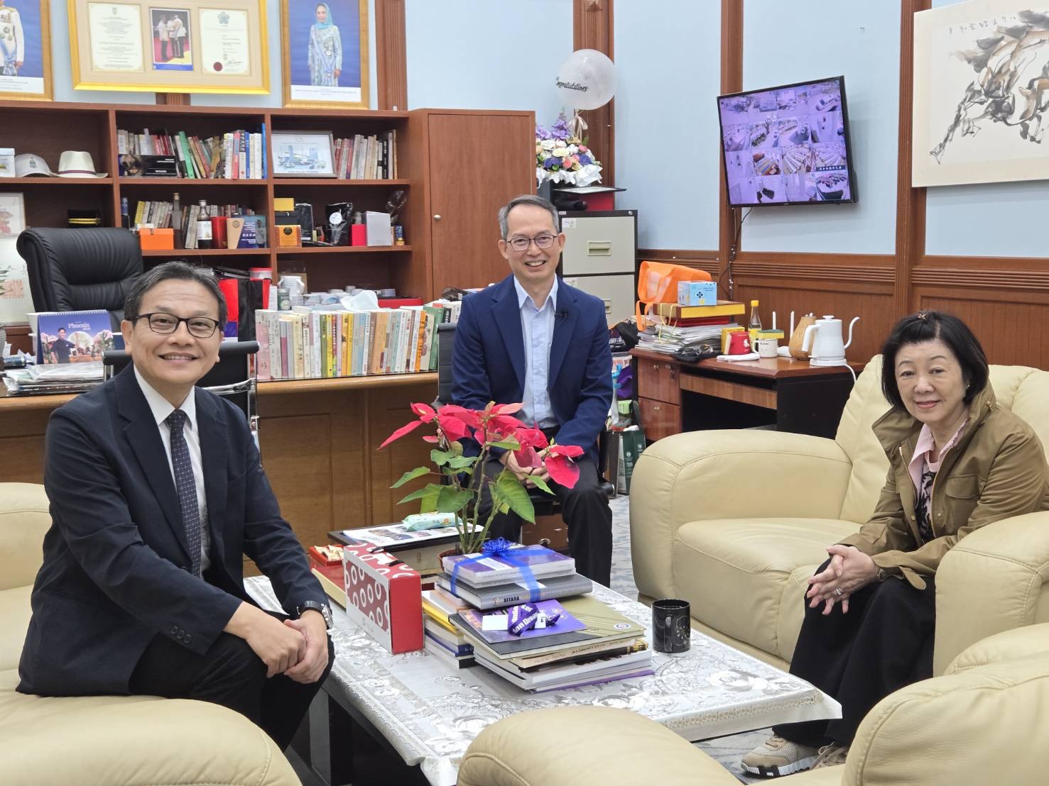 ▲崑山科大鐘俊顏副校長(左起)、檳州立法議會議長拿督斯里劉子健、台積電慈善基金會董事長張淑芬就公益理念與社會議題進行深入交流。(圖/崑山科大提供)