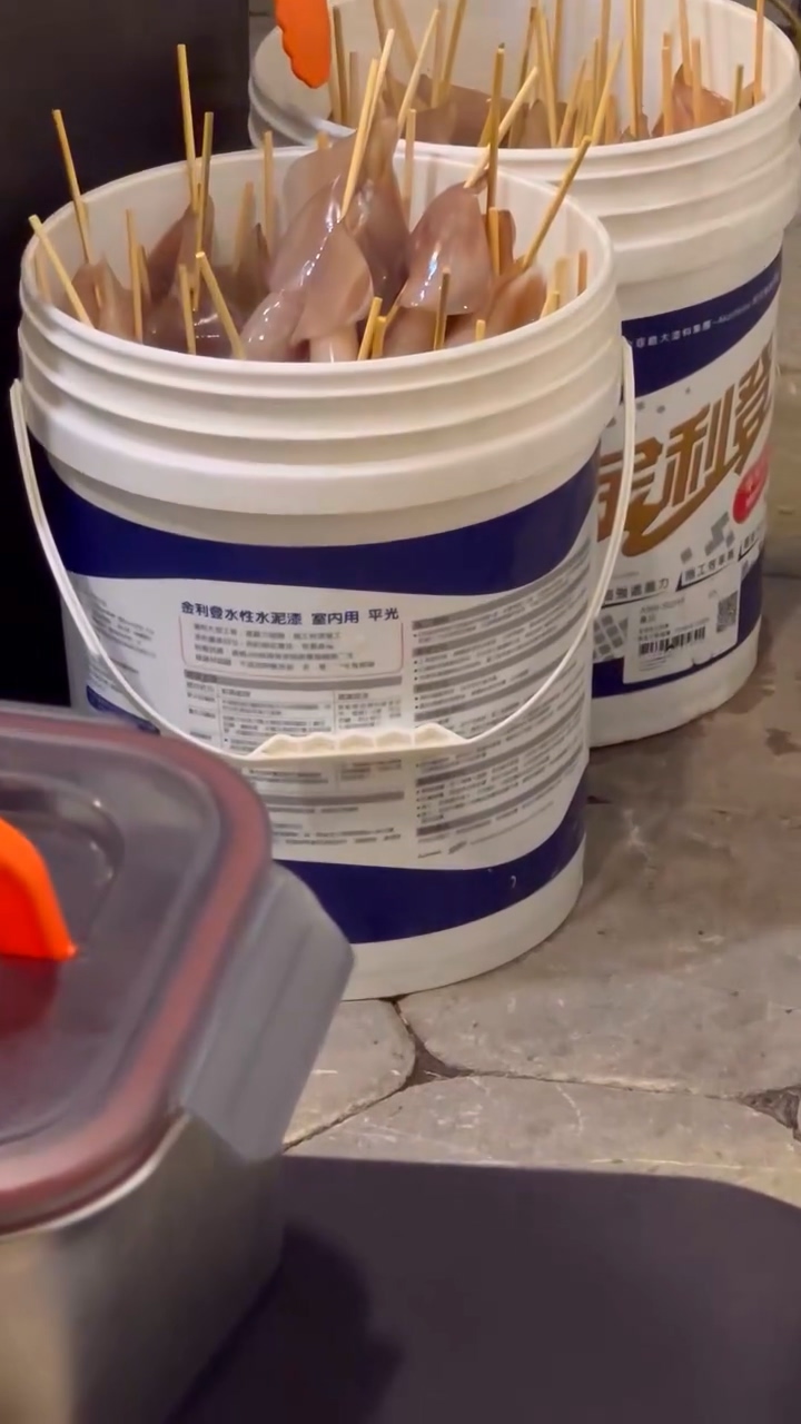 網友在Threads發文指出,「下酒祭用水泥漆桶裝魷魚?認真?」並附上影片。看到影片的網友留言「工業用桶子拿來當作食用級料桶」、「食物盛裝盒的標示有明確的規定,是絕對不可以用這種東西裝的喔」、「說實在用這種裝,倒不如買個冰桶打冰還比較實際」、「這種桶子超好用的,而且很耐操」。