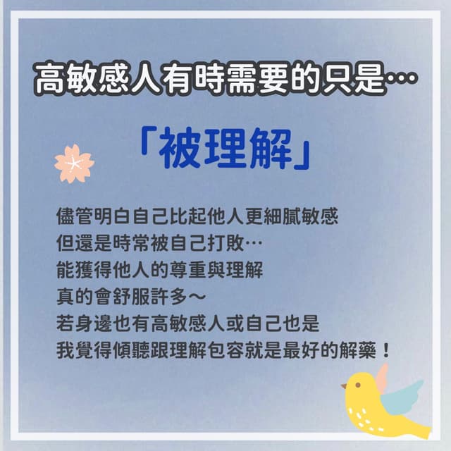 請記得《聖經》哥林多前書第十三章第七節關於愛的描述:「凡事包容,凡事相信,凡事盼望,凡事忍耐。」這份教導,也適用於你與自己的關係——包容自己偶爾的過度敏感,相信自己值得被愛,對成長的過程懷抱盼望,並對自己多一份溫柔的忍耐。