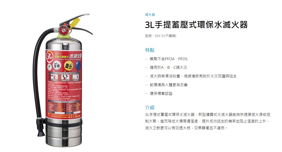 3L手提蓄壓式環保水滅火器