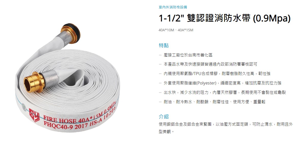 1-1/2 雙認證消防水帶 (0.9Mpa)