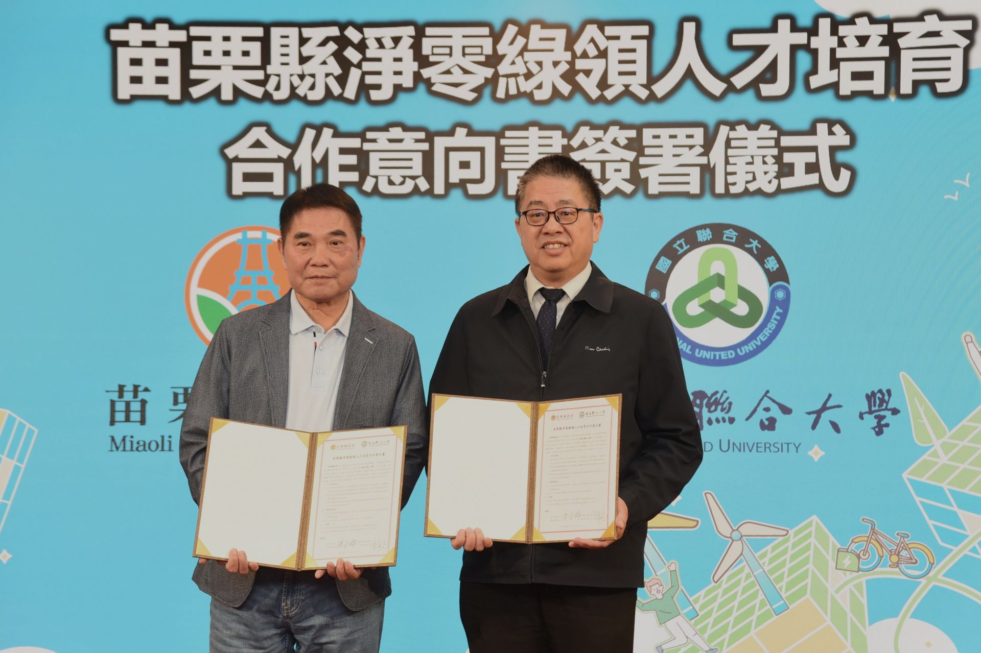 國立聯合大學校長侯帝光表示,近期已多次與縣府洽談合作,在教育與人才培訓方面建立深度合作關係,也展現縣府施政前瞻視野。此次攜手推動綠領人才培訓,結合苗栗發展綠能的優勢,為淨零碳排做好準備,盼共同打造乾淨、美麗且永續的苗栗家園。