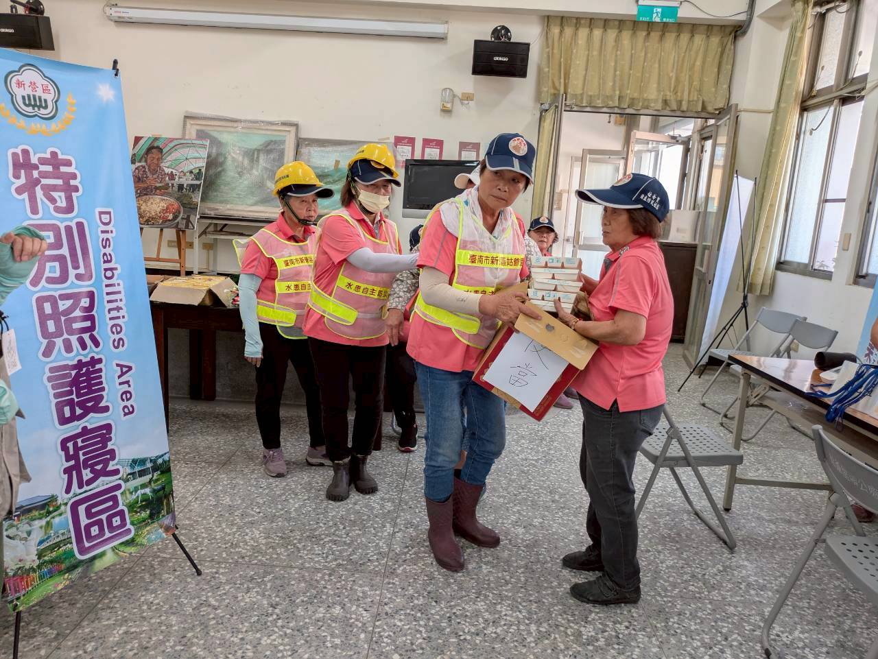 姑爺里演練團隊迅速啟動居民撤離與保全戶轉運流程,動用曳引機協助撤離行動,並將民眾安置至姑爺活動中心(代天府)。避難收容組隨即開啟收容機制,由社區膳食志工提供溫熱餐食,讓受災民眾在混亂中也能感受到社區的溫暖與支持。