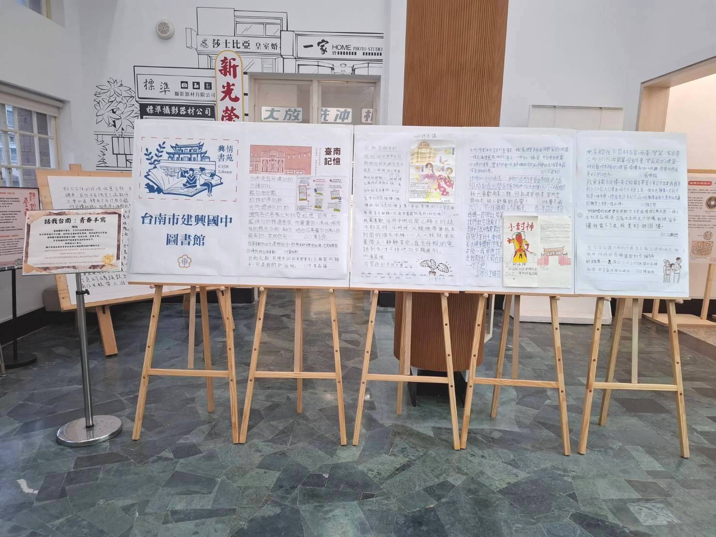 ▲建興國中「話我台南:青春手寫」成果展 即日起在中西區圖書館展出。(中西區公所 提供)